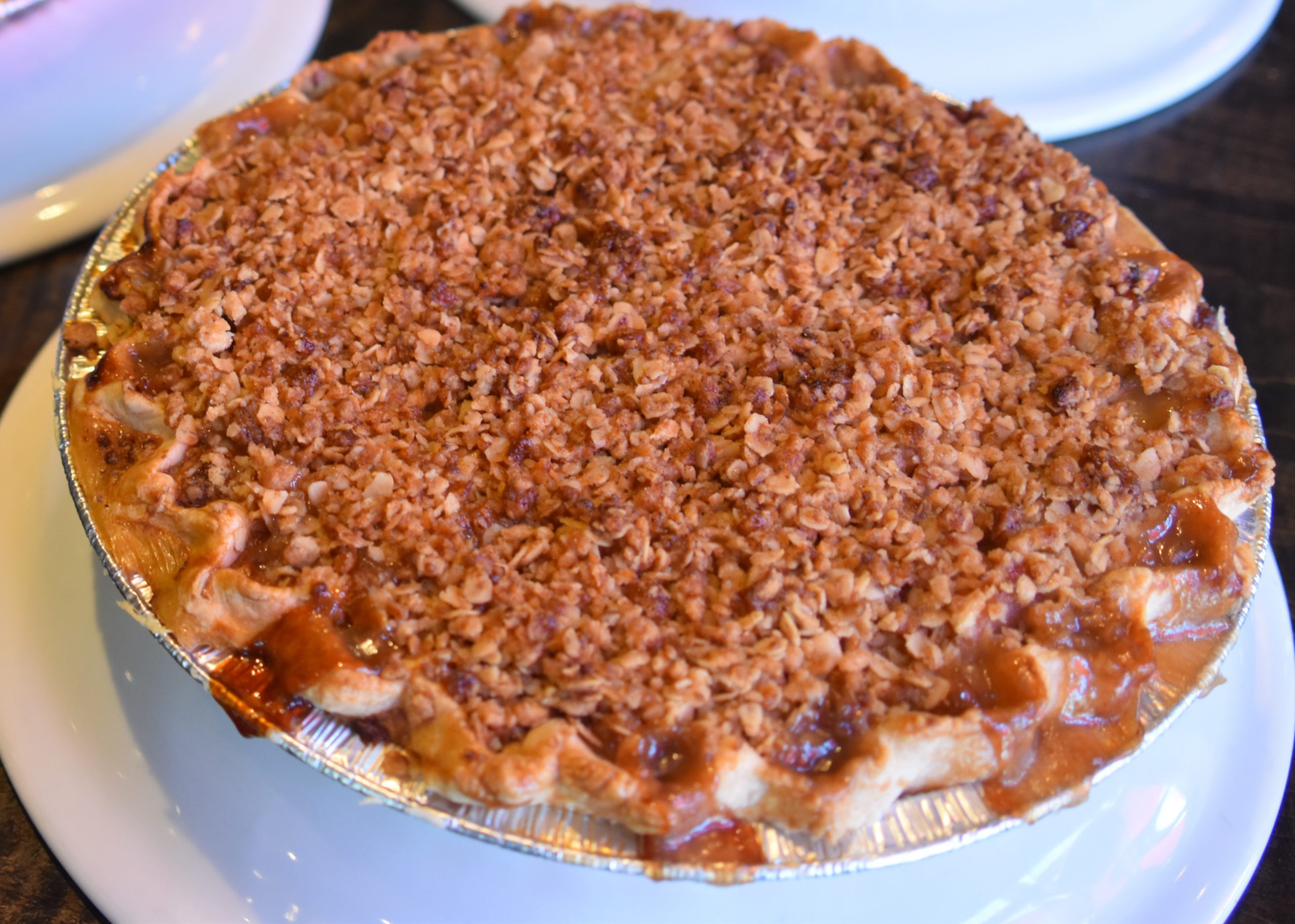 House-made, filled with cinnamon apples and topped with brown-butter oatmeal streusel, in a tender flaky crust